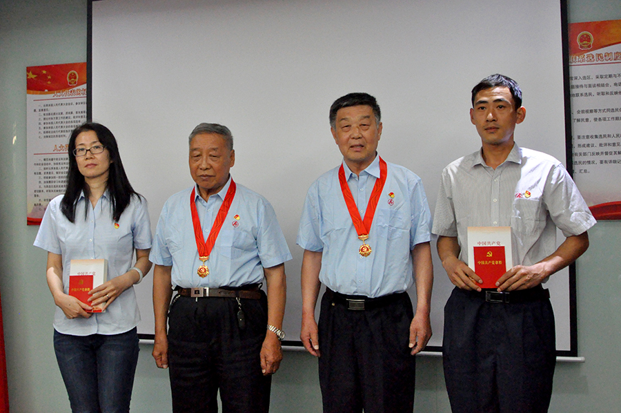 在颁发仪式上,全体党员高唱国歌,一起重温入党誓词,区工商联会员企业党委副书记李春节,安达集团党委书记、董事长崔洪金,向党龄达到50周年的两名老党员颁发“光荣在党50年”纪念章。与会全体党员以热烈的掌声,向老党员50年来的无私奉献和革命本色致以崇高的敬意。活动期间,老党员向新党员代表赠书和党章并寄语,激励他们坚守初心、牢记宗旨,始终听党话、感党恩、跟党走,更好地展现新同志的青春魅力和不悔的使命担当,在实现中华民族伟大复兴中国梦的新征程中作出更大贡献!