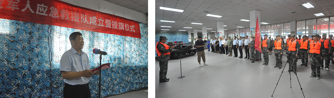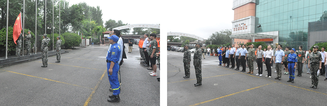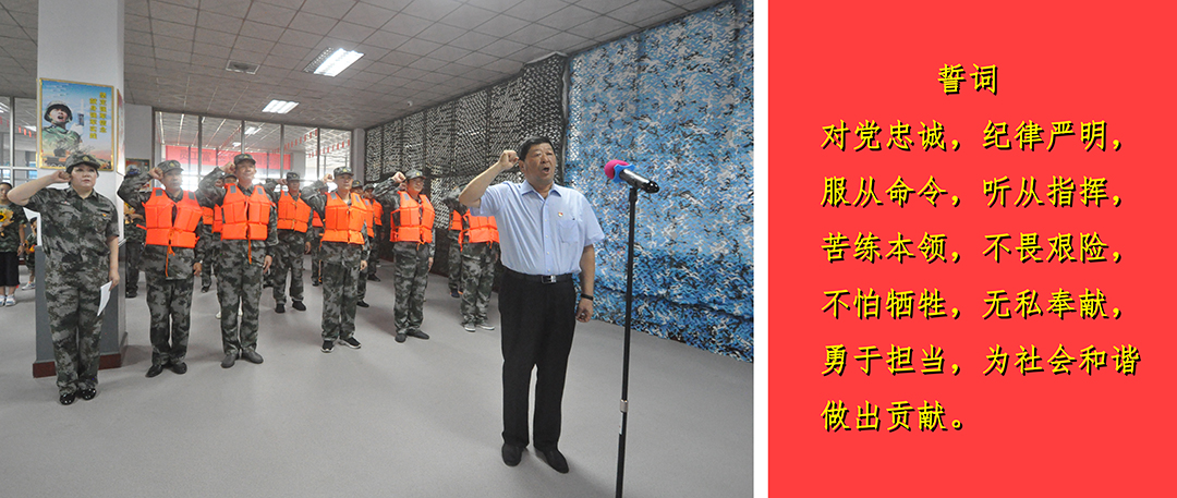 在主持人马萍向崔洪金董事长铿锵有力的请示后,活动正式开始。全体人员齐唱国歌,伴随着嘹亮的歌声,五星红旗冉冉升起。随后全体人员移步二楼退役军人之家,在全体领导、安达职工及职工子弟的共同见证下,全国“最美拥军人物”崔洪金宣布“天津安达退役军人应急救援队”成立并带领全体救援队队员宣誓。