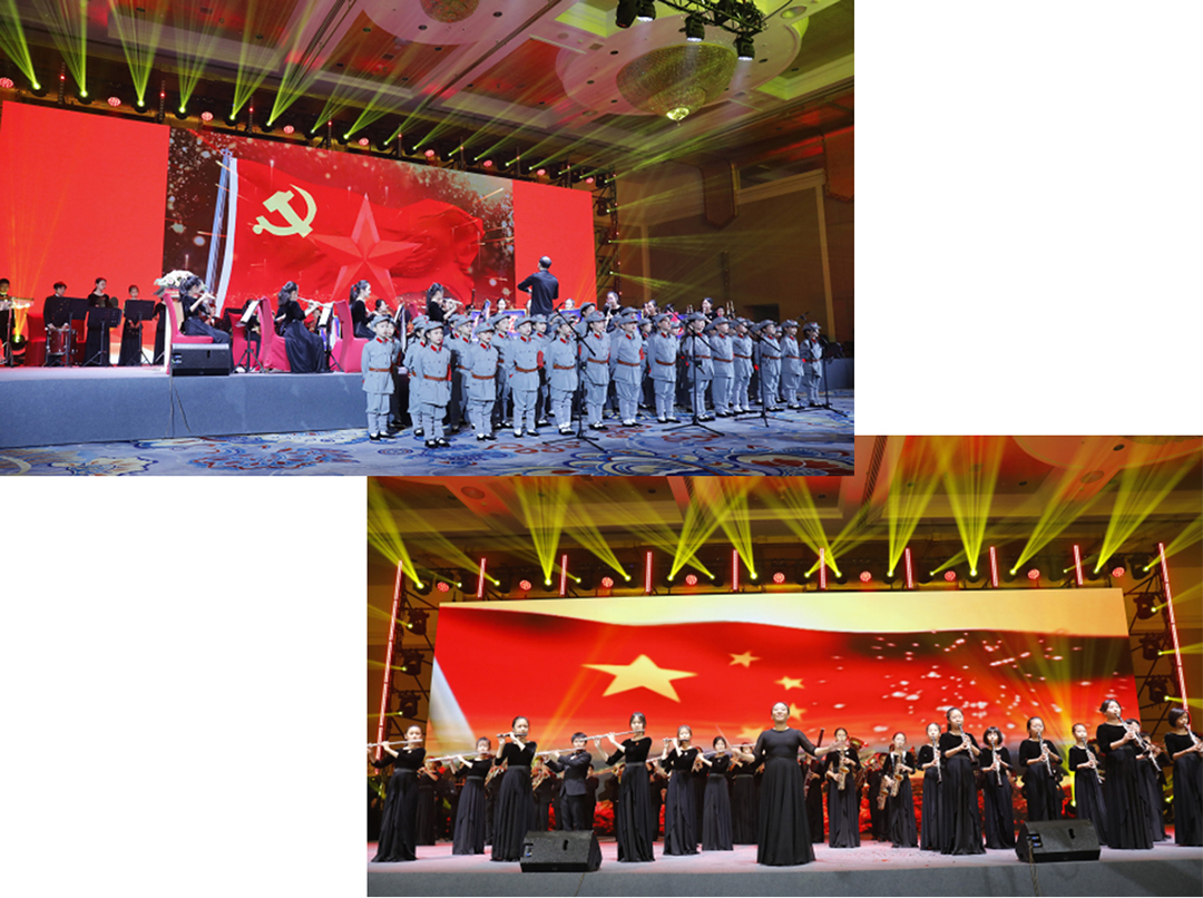 晚会在北京府学胡同小学童声合唱团的同学们表演的歌舞《红星闪闪》中隆重开幕。幽默剧《指挥家与钢琴家》;女声独唱《绣红旗》;诗朗诵《我幸福,我是中国人》;舞蹈《敦煌壁画》;越剧《梁祝——草桥结拜》;相声《舞台趣闻》;合唱《歌唱祖国》等作品都是艺术海洋中经典作品,表达老一辈艺术家们对党和国家的无限热爱,在国家富强民主文明和谐的艺术环境中百花齐放,让中华民族艺术屹立于世界民族艺术之林。进一步激励年轻人奋发图强,继承老一辈德艺双馨的精神,使艺术经典永流传,让敬老孝亲精神生生不息。