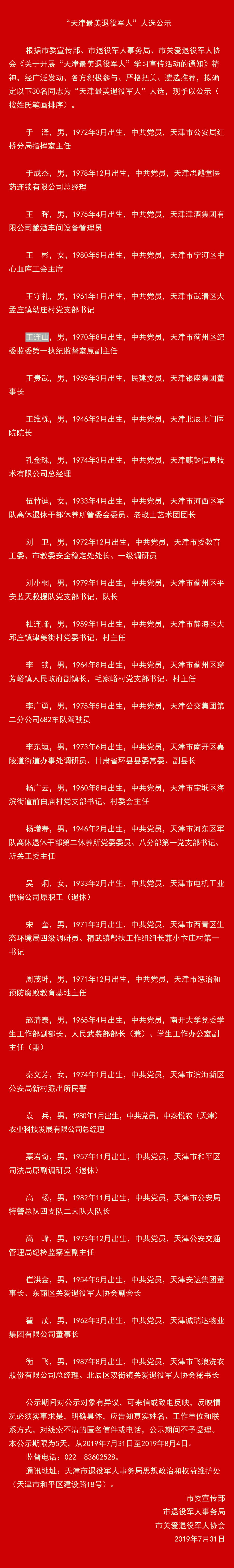 “天津最美退役军人”已公示,安达集团党委书记董事长崔洪金入选