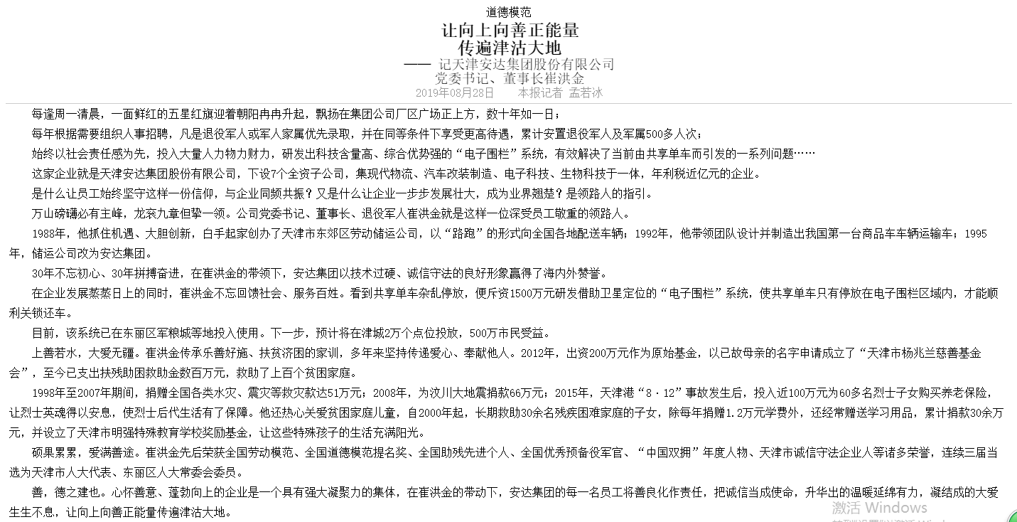 > 《天津日报》刊发 让向上向善正能量传遍津沽大地-记乐动平台(中国)官方网站党委书记董事长崔洪金